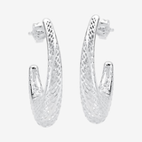 BRINCO PRATA 925 3D MEIA ARGOLA COMPRIDA
