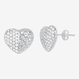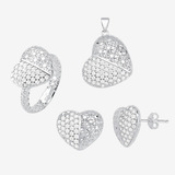 Conjunto prata 925 3D CORAÇÃO, METADE EM PAVÊ