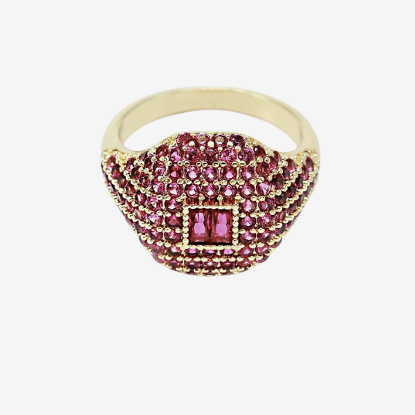 Anel bombê com zircônias e pedras carrê