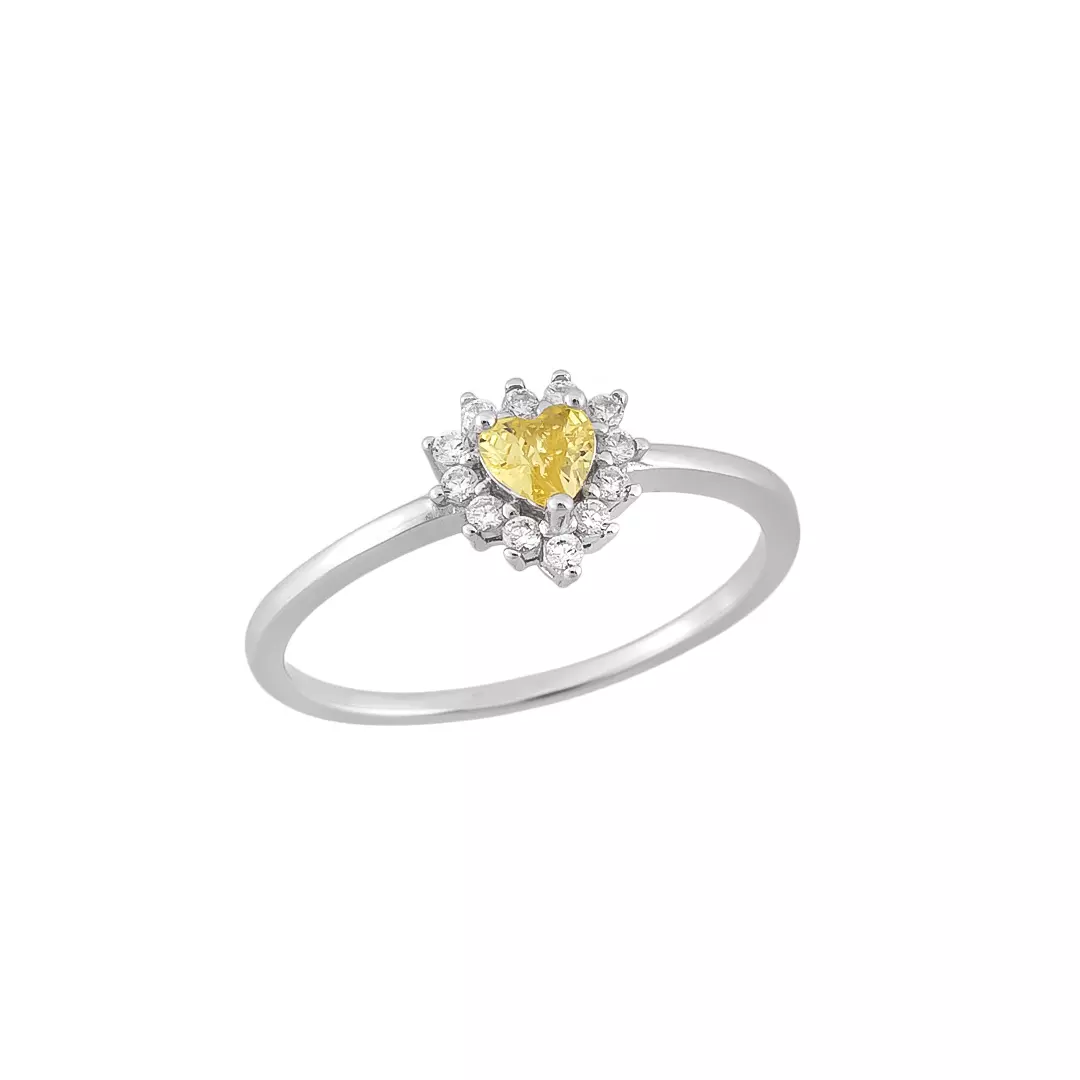 Anel Coração Cravejado yellow – Prata 925 com Banho de Ródio