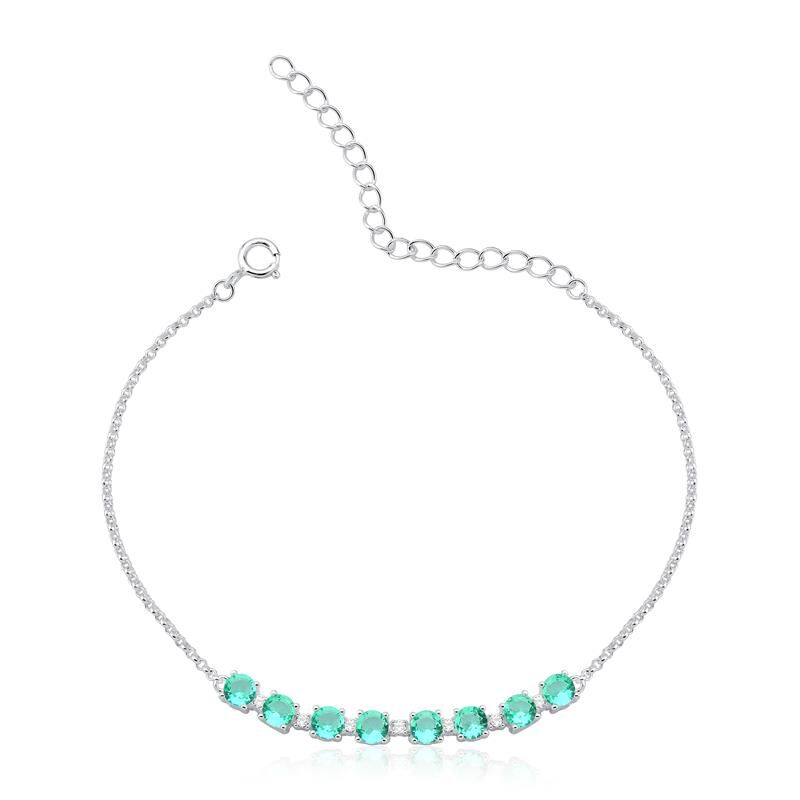GARGANTILHA PRATA 925 PEDRAS GREEN – 42+5CM & PULSEIRA PRATA 925 PEDRAS GREEN – 15+5CM